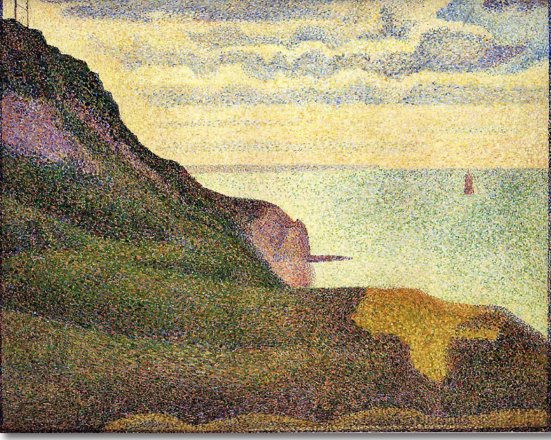 An ekphrastic poem is inspired by a work of art. “Washing Away My Grief with the Sea” was inspired by Georges Seurat’s Port En Bessin The Semaphor and Cliffs.